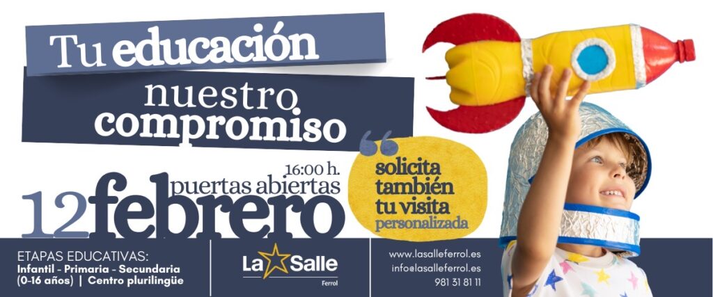 Convidámoste a coñecer o noso proxecto educativo nunha Xornada de Portas Abertas o vindeiro 12 de febreiro ás 16:00 h